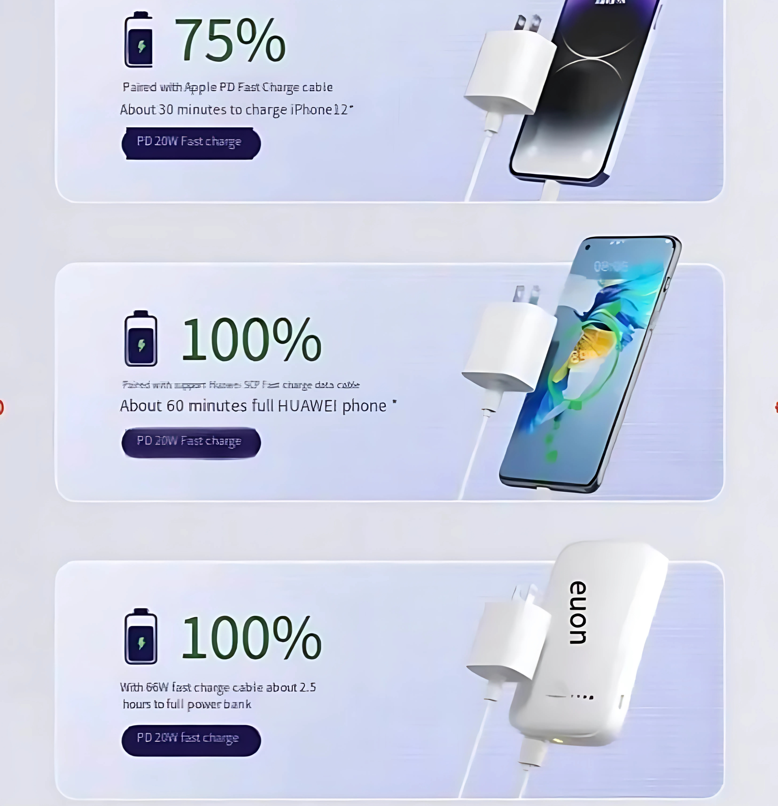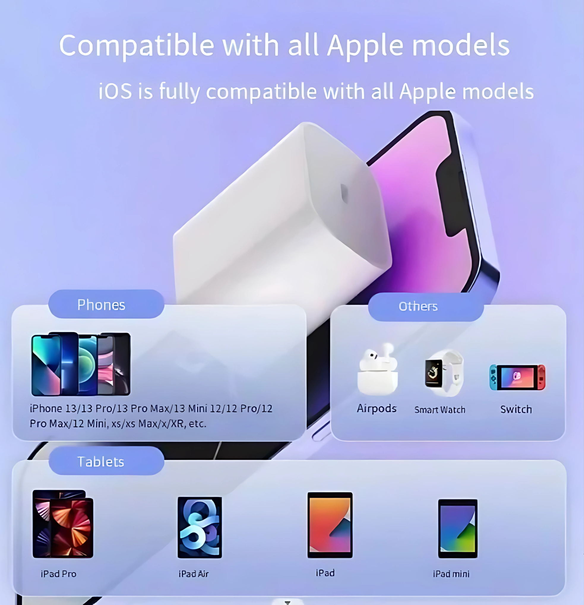 20W Fast Charging: Rapid power delivery for iPhones, iPads, and other Apple devices.